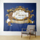 Adorável Príncipe Afro-Americano vestindo fralda branca, chinelos azuis e coroa dourada em uma moldura dourada elegante com fundo azul real. Estandarte personalizado com seu próprio texto. Ótimo para Chá de Bebê do Príncipe Real, 1º Aniversário do Príncipe Real ou Batismo ©2022 Miss Sassy Party Designs
