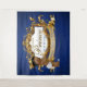 Adorável Príncipe Afro-Americano vestindo fralda branca, chinelos azuis e coroa dourada em uma moldura elegante dourada com um fundo azul real. Estandarte personalizado com seu próprio texto. Ótimo para um Chá de Bebê do Príncipe Real, 1º Aniversário do Príncipe Real ou Batismo ©2022 Miss Sassy Party Designs