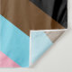É uma reviravolta na tradicional bandeira do arco-íris, criada pelo artista Daniel Quasar, que inclui listras pretas e marrons para pessoas de cor e as cores da bandeira trans em uma seta para indicar o progresso.