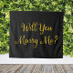 Sinal de proposta de casamento preto e dourado. Faixa você se casará comigo? para propor ao seu namorado ou namorada.