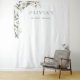 Apaixonar-se por este design botânico etéreo para chás de panela de outono, jantas de ensaio, casamentos ou festas de noivado. O Elegante design apresenta uma abóbora branca de aquarela, inscrita com as iniciais do casal e flanqueada por flores brancas, folhagem verde e folhas de eucalipto. Personalize este pano de fundo de fotos com duas linhas de texto personalizado.