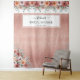 Tapeçaria elegante com fundo de flores em dourado rosa com espaço para o(s) seu(s) nome(s) e seu evento. Ideal para casamentos, chá de noiva e de bebê, brunch, aniversários e aniversários de casamento. Fundo com brilho em dourado rosa falso. Moldura sofisticada para seus nomes e detalhes do evento com detalhes em escrita à mão. Lindo bordo pintado à mão em aquarela no topo e buquês nos cantos inferiores, com flores e folhagens em uma mistura de tons de rosa delicado, rosa poeirento, pêssego, marfim, azul poeirento nublado e cinza, e tons verdes. Convites e variedade de produtos para eventos disponíveis. Parte de nossa coleção "Ethereal em Rosa Delicado" para casamentos e eventos.