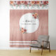 Tapeçaria de fundo fotográfico em rosa dourado elegante com área para o(s) seu(s) nome(s) e seu evento. Ideal para casamentos, chá de noiva e de bebê, brunch, aniversários e aniversários de casamento. Fundo de brilho em rosa dourado falso e borda pintada à mão em aquarela sobreposta com flores e folhagens em uma mistura de tons rosa delicado, rosa poeirento, pêssego, marfim, azul poeirento nublado e esbranquiçado, cinza e verde sage. Detalhes em escrita manual. Nome(s) e texto do evento cercados por anéis circulares com buquês florais. Convites e variedade de produtos para eventos disponíveis. Parte de nossa coleção de casamento e eventos "Ethereal em Rosa Delicado".