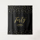 Esta tapeçaria moderna é perfeita para uma festa de 40 anos com tema de cores preto e dourado chic. Seus convidados vão se divertir tirando uma foto com este cenário sofisticado e lembrarão do seu dia especial. O design apresenta a tipografia dourada "Quarenta" e um fundo de confetes hexagonais. Você pode personalizar o nome, evento e data na parte inferior da tapeçaria. Mais convites e suprimentos para festa estão disponíveis na minha loja BaraBomDesign. Obrigado!