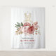 Descubra o local da sua festa com um pano de fundo de vestido de ouro floral e silencioso para sua Quinceanera especial, festa de aniversário de 15. Com um fundo branco comum decorado com cor rosa rústica e flor dourada de aquarela floral, este é certamente um dos pontos para se fazer selifes. Adicione seu nome e data da parte clicando no botão "Personalizar".