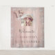 Uma tapeçaria de boas-vindas para uma Quinceañera feminina e glamorosa, festa de 15 anos. Um fundo metálico falso rosa dourado decorado com pó de brilho prateado falso. Personalize e adicione uma foto de alta qualidade e nome. O número 15 é escrito com uma fonte estilo balão.