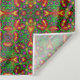 Padrões vibrantes e intrincados formam um design caleidoscópico com arranjos simétricos e cores vívidas. Formas interagem com verdes, vermelhos e roxas, criando um efeito visual dinâmico e vivo.