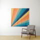 Ilustração geométrica de raios solares de estilo retrô com listras amarelas, laranja, azuis e turquesas