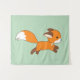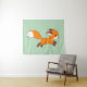 Um pequeno kit de raposa de desenho animado com orelhas grandes e cauda arbustiva está correndo rápido.