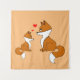 Esta tapeçaria apresenta um motivo de raposa fofa! Irmão e irmã ou mãe/pai e filho amorosos com corações vermelhos. Decoração de berçário fofa e presente bonito para um bebê recém-nascido, chá de bebê e mais! Desenhado à mão e processado digitalmente.