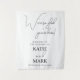 Uma bela maneira de dar as boas vindas aos seus convidados a um dos dias mais importantes da sua vida. Um pano de fundo de tapeçaria de banner de casamento minimalista com texto personalizado de script de assinatura. Personalize e faça dele seu!