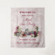 Alice no País das Maravilhas Festa do Chá do Chapeleiro Louco Burgundy & Blush Floral Personalizado com seu texto personalizado. Ilustrações vintage em cores vibrantes, com fonte de caligrafia sofisticada. Para festa de aniversário, chá de bebê e mais! Tema Festa do Chá - Tapeçaria de Boas-Vindas para Parede!