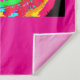 I painted my own uniquely original reddish-orange fox warrior princess with half human half fox features with reddish orange furry ears with purple, long, reddish-orange hair with colorful ribbons on the side in the shape of a butterfly, wrapped in a rainbow colored crochet type snood, and a multicolored dress made of necklaces and ribbons.