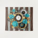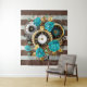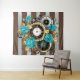 Tapete De Parede Relógio e Rosas de Turquesa em Striping