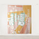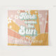 Aqui vem o Sol Retro Bandeira de aniversário ensolarado com margaridas boho.