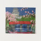 Uma tapeçaria bonito com Sakura floresce. O castelo Himeji fica ao fundo.