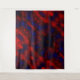 Riscos vermelhos com tons mais claros e secos que foram cruzados e passados em um filtro que os modificou de maneira que não se percebe mais riscos, mas, parecem formas quase quadadas sobre o fundo azul, serem as podendo de causar no azul.