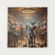 Futuristic robots enjoying a lively night at a neon-lit bar, sharing drinks, laughter, and music. A perfect blend of technology and fun, creating a unique cyberpunk party atmosphere.