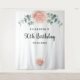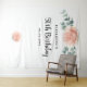 Elegante, clássico, estilo floral moderno para banner de festa de 50 anos (ou qualquer idade), tapeçaria. Decorado com peônias, flores e folhagem de eucalipto pintadas à aguada em tons rosa e dourado. Com o texto: 50º Aniversário escrito em um estilo de letra manuscrita preta moderna e grande. Personalize e adicione um nome e uma data. Pode ser usado como banner de boas-vindas, decoração de parede para a festa ou como pano de fundo para fotos.