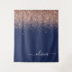 Azul Marinho e Rosa Dourado - Bege Rosa Brilho Lantejoulas Monograma Nome e Inicial Tapeçaria. Isto torna o presente perfeito para os 16 anos, casamento, chá de noiva, aniversário, chá de bebê ou festa de despedida de solteira para alguém que ama luxo e estilos chiques.