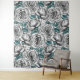 Um belo padrão digital pintado à mão, rosas brancas com folhas azuis.