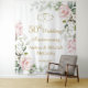 Tapeçaria de 50º Aniversário de Casamento com imagens de rosas rosadas, folhagem verde e corações unidos. Personalize com seus nomes e data.