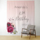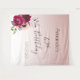 Um tapete para uma festa de 40 anos. Um fundo ombre de rosa suave dourado feminino e elegante. Decorado com flores roxas escuras, burgundy e rosa. Modelos para um nome e uma data. O texto: Aniversário de 40 anos está escrito em preto com uma fonte manuscrita moderna e grande. Perfeito como decoração para a festa ou como fundo para fotos.