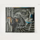 Um cão rottweiler está na guarda de uma borda do castelo com um grifo de gárgula.