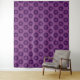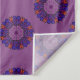 Design geométrica em tons de púrpura e vermelhos com traços de vidro manchado.
