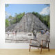 México parede decorada. Turistas escalando a alta pirâmide antiga nas ruínas maias de Coba na península de Yucatán, México