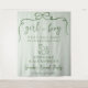 Create a stunning and timeless focal point for your celebration with this elegant Girl or Boy Gender Reveal Fabric Backdrop, designed to bring a soft, heirloom-inspired charm to your special day. Featuring a refined sage green color palette, delicate bow illustration, and a vintage rocking horse motif, this fabric banner blends preppy sophistication with modern minimal style—perfect for parents who love elevated, classic baby celebrations.