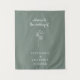 Create a refined focal point for your celebration with this Sage Green Wildflower Wedding Tapestry Sign. The design features a soft sage green background paired with crisp white text and graphics for a clean, modern contrast. A simple vector wildflower illustration adds a delicate botanical accent, reinforcing the natural, garden-inspired aesthetic.