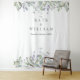 Fundo de photo booth de casamento com aguarela floral de sage lilac greenery com lindas folhas de sage e lilac e os detalhes do seu casamento em texto clássico e elegante. Desenhado por Thisisnotme©