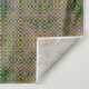 Um padrão geométrico complexo apresenta cores vibrantes, incluindo verdes, púrpuras e azuis, intricadamente tecidos em um design simétrico repetitivo. Pequenos quadrados e círculos formam um efeito caleidoscópico, criando um mosaico atraente para os olhos.
