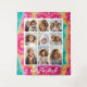 Feriado não convencional e design de Ano Novo com uma vibração de 70 anos. Fontes e tipos engraçados mais um sotaque de tingimento. 9 Colagem fotográfica em forma de grelha. "Saúde ao Ano Novo" está numa fonte moderna que coordena com o fundo não tradicional. Padrões de coloração retrorreflectores numa mistura de rosa-quente, laranja e lacre. Se precisar mover alguma coisa, clique no botão personalizar para fazer alterações.