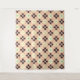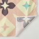 A seamless geometric pattern with cream, beige, and mint green shapes. Bold, dark brown floral designs form a repeating diamond grid. Retro vibe.