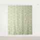 A seamless geometric pattern with overlapping teal circles forming diamond shapes against a peach and cream background, evoking a retro, calming vibe.