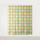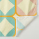 Seamless retro pattern with rounded squares in peach, teal, and cream hues, outlined in orange. Mid-century modern style, conveying a vintage, playful tone.