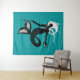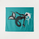 Tapeçaria de sereia sombria com uma ilustração digital que retrata uma bela criatura marinha preta - figura meio-peixe, meio-mulher com pele preta, olhos brilhantes, cabelos brancos e cauda lindamente encaracolada. Essa sereia estranha tem um colar de esqueletos de peixes e conchas.