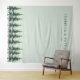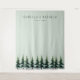Este cenário de casamento apresenta um design sereno e minimalista com um fundo verde pálido suave que cria uma atmosfera calmante. A seção inferior é adornada com árvores perenes estilizadas em tons variados de verde, adicionando um toque de natureza à composição. O texto personalizável no topo permite a personalização com nomes e datas, definido em uma fonte sans-serif moderna e limpa. O estilo geral é contemporâneo e elegante, perfeito para criar uma atmosfera tranquila e sofisticada no seu evento especial.