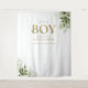 Fundo para cabine de fotos de bebê menino com tipografia dourada elegante e folhagem botânica verde. Criado por Thisisnotme©