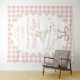 Perfect for a baby girl shower, goose themed baby shower, soft pink gingham baby shower, preppy baby shower theme, or vintage inspired celebration, this personalized baby shower backdrop tapestry brings charm, warmth, and timeless style to your event while creating a beautiful setting for photos you’ll treasure forever.