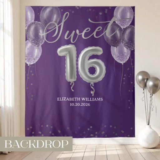 Purple Silver Foil Sweet 16 Birthday Balloons PartCriado por CaMi Designs