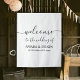 Uma bela maneira de dar as boas vindas aos seus convidados a um dos dias mais importantes da sua vida. Um pano de fundo de tapeçaria de banner de casamento minimalista com texto personalizado de script de assinatura. Personalize e faça dele seu!