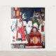 Decorative Sinterklaas wall tapestry featuring Saint Nicholas arriving on horseback with a festive rooftop drummer in a snowy Dutch village. This nostalgic holiday illustration brings cozy December 5th sfeer to living rooms, kids rooms, or seasonal interiors. Perfect for Dutch holiday décor, Sinterklaas celebrations, and winter wall art Original artwork by Caroline Bonne Müller