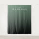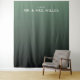This elegant wedding backdrop features a minimalist design with a gradient background transitioning from soft mint to deep forest green. The layout centers on bold, uppercase typography that highlights the couple's names in a sophisticated serif font, creating a focal point against the serene color palette. With its clean lines and uncluttered composition, this modern aesthetic exudes sophistication and simplicity, making it perfect for formal celebrations. The customizable date placeholder allows personalization, ensuring this versatile piece can be tailored for any special occasion.