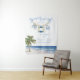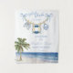 Charming baby shower design featuring a watercolor nautical clothesline with baby shorts, a bib, and a life preserver in soft blue tones. The tropical palm tree, sandy shore, and rolling ocean waves create a relaxed seaside feel, while the airy pastel palette adds a sweet and elegant touch for a baby boy celebration. This wall tapestry is perfect for seaside, ocean, tropical, coastal, or summer baby shower décor and uses a more varied keyword mix to reach a broader audience.