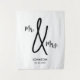 Fundo de casamento de Sr. e Sra. em branco com um sobrenome personalizado e data de casamento. Decorações de cerimônia ou recepção modernas e sofisticadas com um estilo simples para se adequar a qualquer tema de festa.