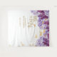 Um pano de fundo de chá de panela boho chic, floral, simples, moderno, elegante e clássico com o título "Sra. à Sra.", com um arco rústico de lilás e hidrangeas em matizes roxas e azuis, com borboletas douradas (este é um efeito digital, não uma folha real), guião de caligrafia moderna e tipografia em dourado. Um design chic, eterno que combina o design de casamento formal tradicional com a caligrafia moderna e um trendy layout.