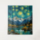 Este design impressionante usa um estilo de arte impressionista para retratar uma noite estrelada nas Montanhas Rochosas.